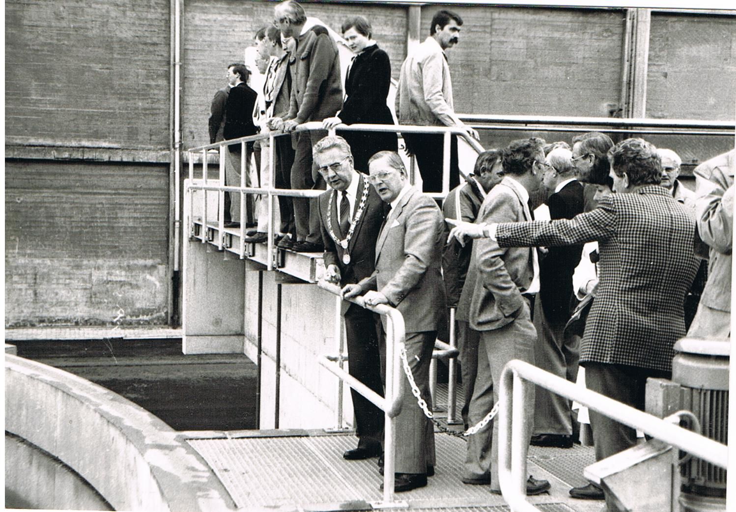 Officiële opening van de waterzuivering door burgermeester de Boer