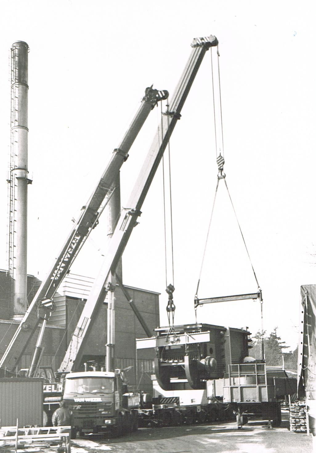 Er zijn 2 kranen nodig voor het plaatsen van de turbine