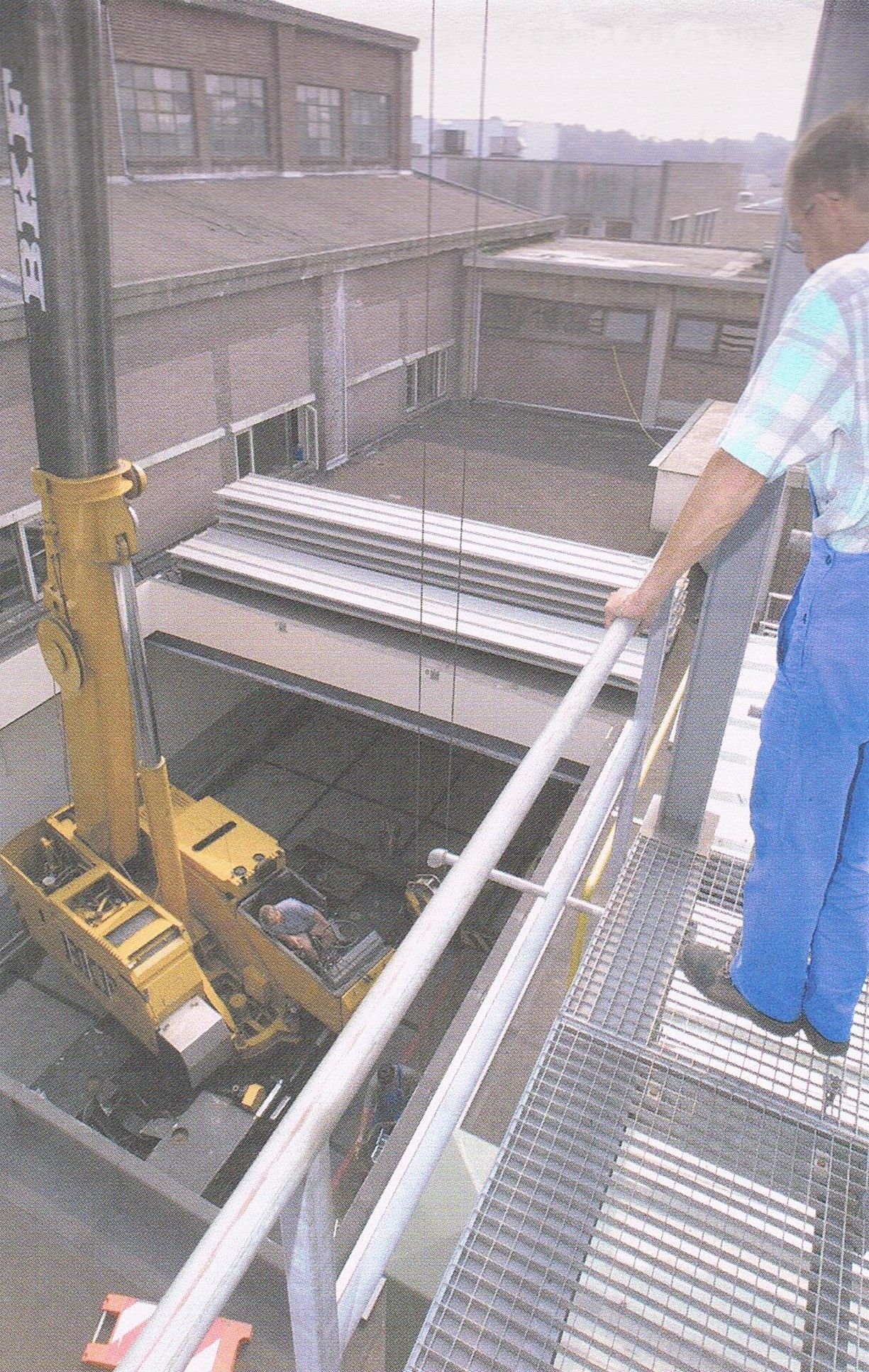 Kraan plaatst de nieuwe ventilator op het dak