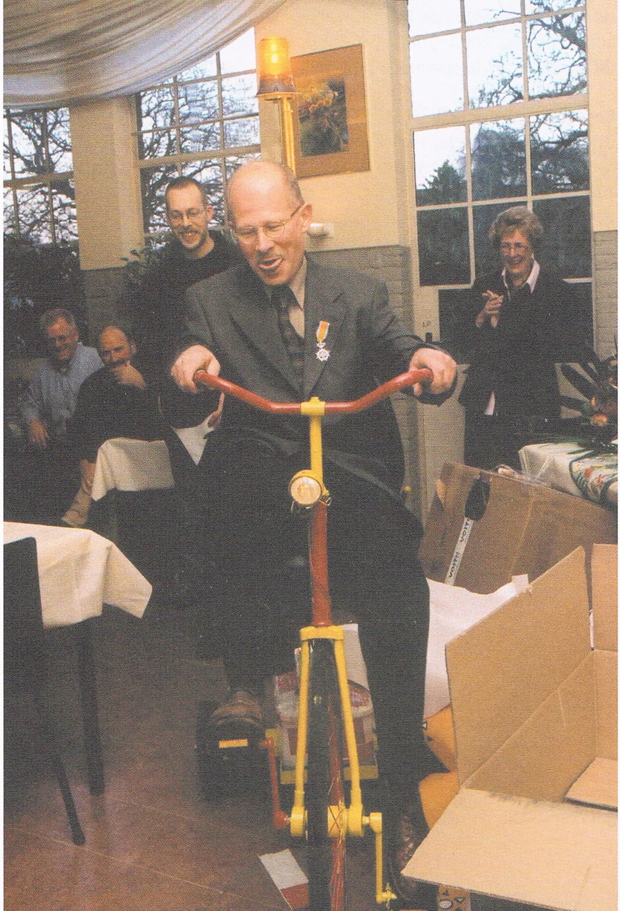 Driewieler met zwaailicht voor de jubilaris